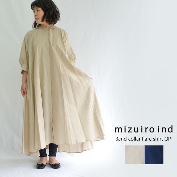 秋冬新作 Mizuiro Ind ミズイロインド バンドカラー フロントフライ フレアシャツワンピース 3色 1 の通販 価格比較のビカム